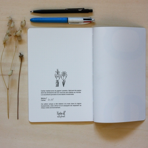 Ce cahier unique a été réalisé à la main dans la région lausannoise, avec amour et en essayant de respecter au mieux notre environnement.