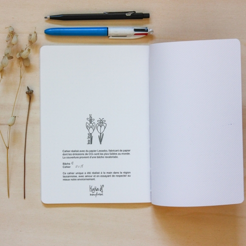 Ce cahier unique a été réalisé à la main dans la région lausannoise, avec amour et en essayant de respecter au mieux notre environnement.