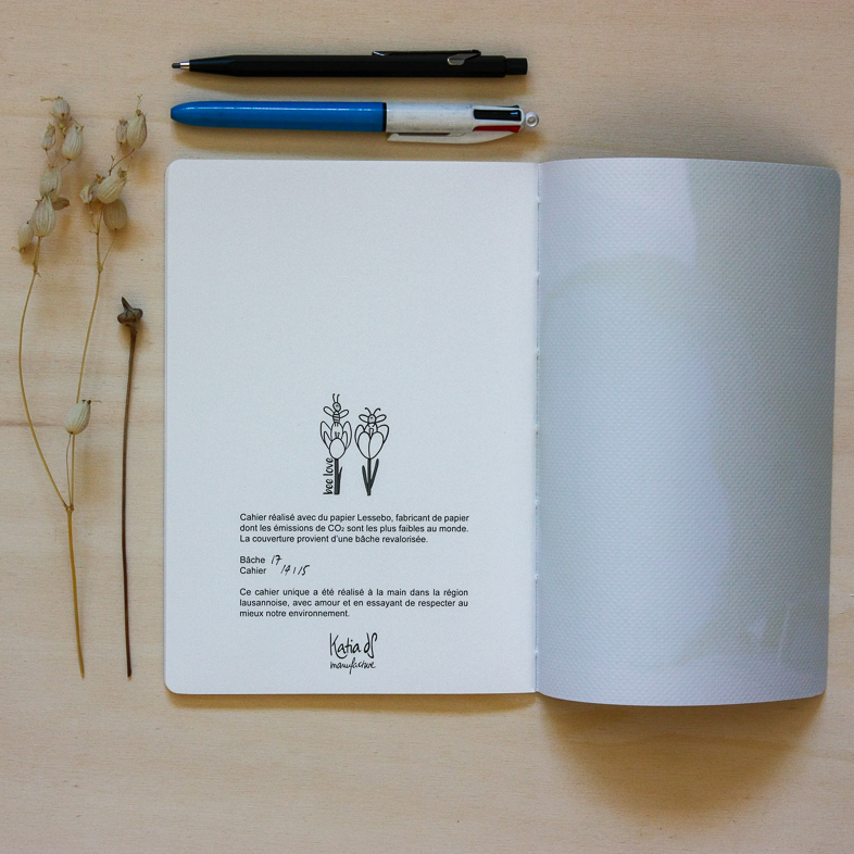 Ce cahier unique a été réalisé à la main dans la région lausannoise, avec amour et en essayant de respecter au mieux notre environnement.