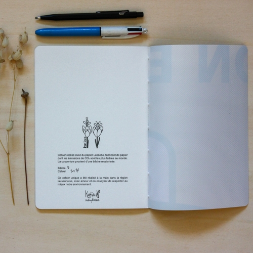 Ce cahier unique a été réalisé à la main dans la région lausannoise, avec amour et en essayant de respecter au mieux notre environnement.