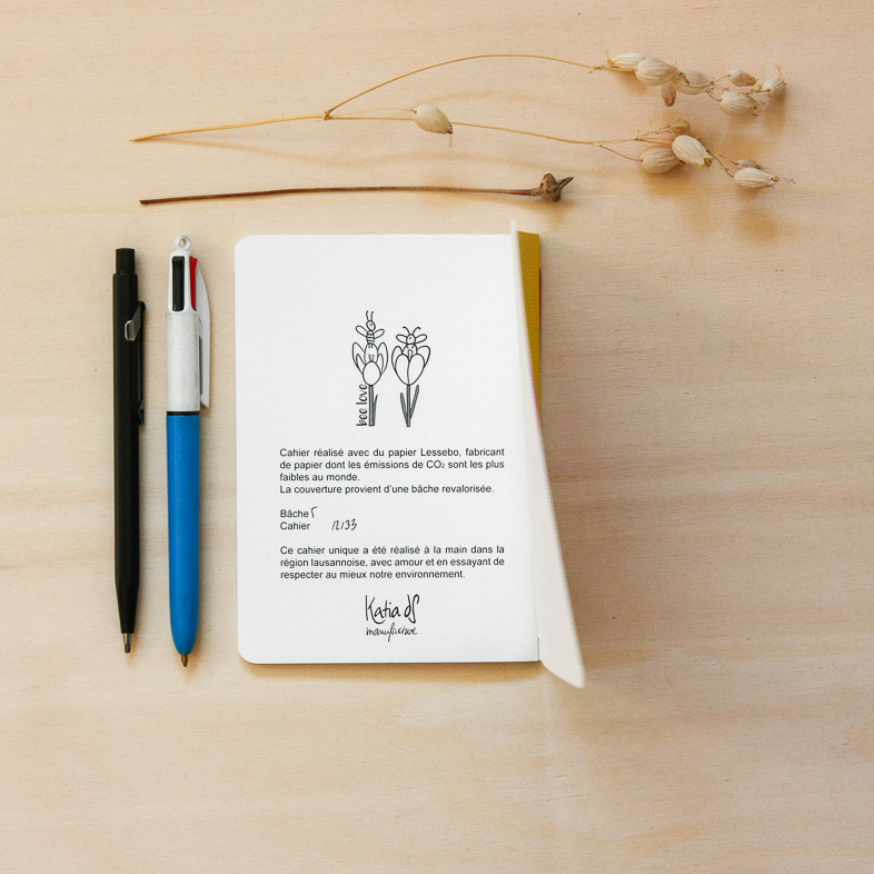 Ce cahier unique a été réalisé à la main dans la région lausannoise, avec amour et en essayant de respecter au mieux notre environnement.