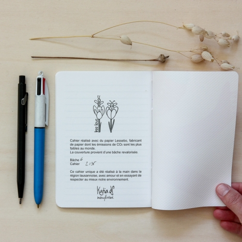 Ce cahier unique a été réalisé à la main dans la région lausannoise, avec amour et en essayant de respecter au mieux notre environnement.