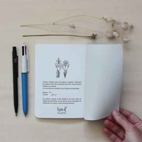 Ce cahier unique a été réalisé à la main dans la région lausannoise, avec amour et en essayant de respecter au mieux notre environnement.