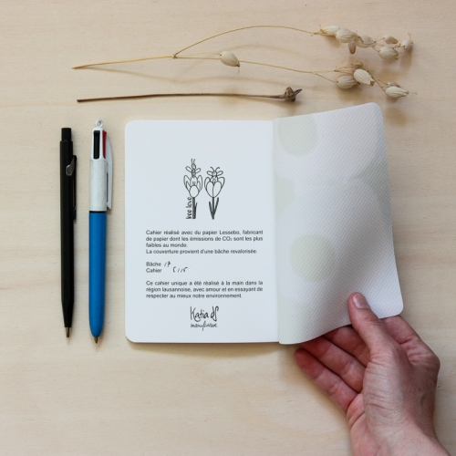 Ce cahier unique a été réalisé à la main dans la région lausannoise, avec amour et en essayant de respecter au mieux notre environnement.