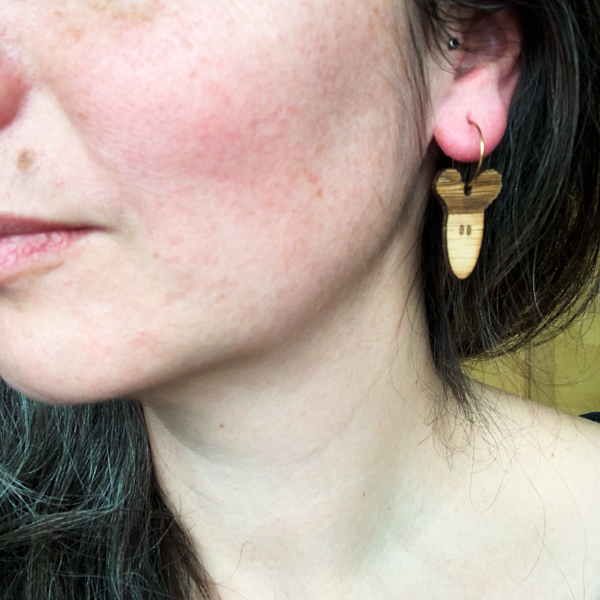Boucle d’oreille réalisée en petite série avec mes personnages «Bande de glands».
