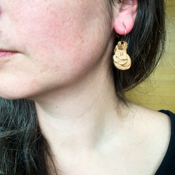 Boucle d’oreille réalisée en petite série avec mes personnages «Bande de glands».