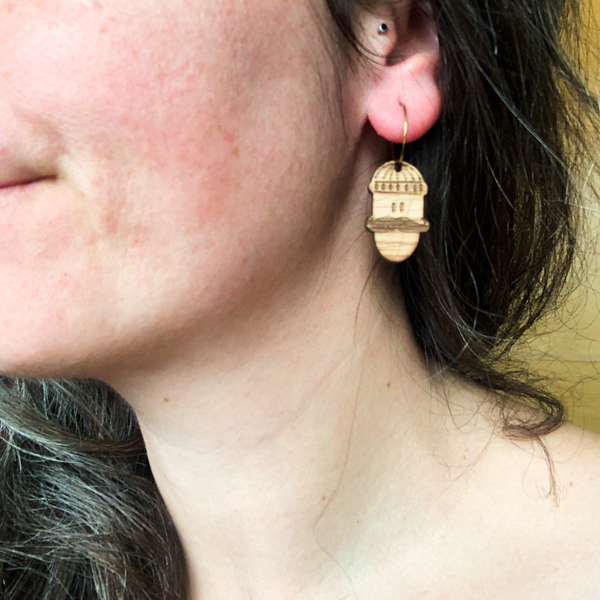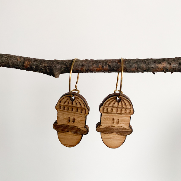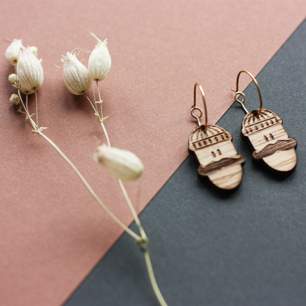 Boucle d’oreille réalisée en petite série avec mes personnages «Bande de glands».