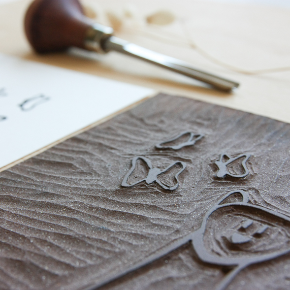 - Gravure : On grave les parties du dessin qui doivent rester blanches à l’aide de gouges, c’est-à-dire les zones non imprimées. Ce sont les surfaces non creusées qui recevront l’encre.