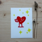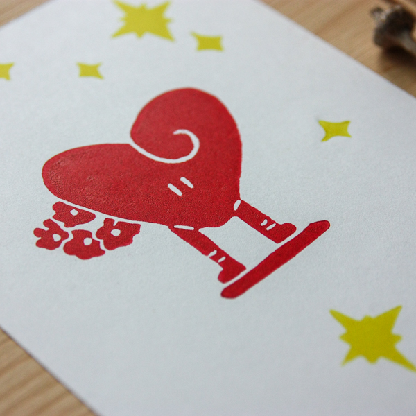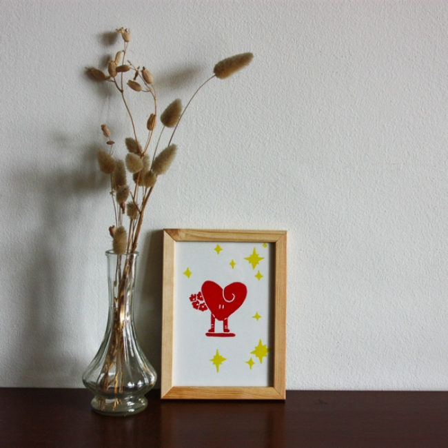 Linogravure originale, gravée et imprimée à la main sur du papier A6 180gr/m2. Elle sera envoyé encadrée.