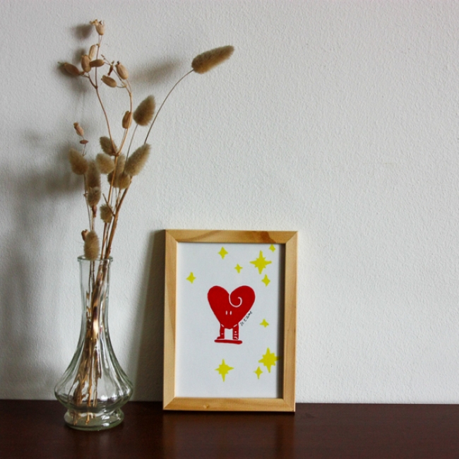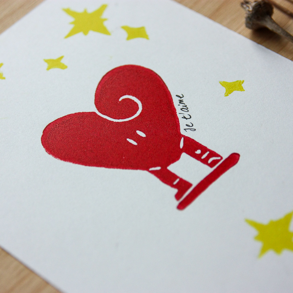 Linogravure originale, gravée et imprimée à la main sur du papier A6 180gr/m2. Elle sera envoyé encadrée.