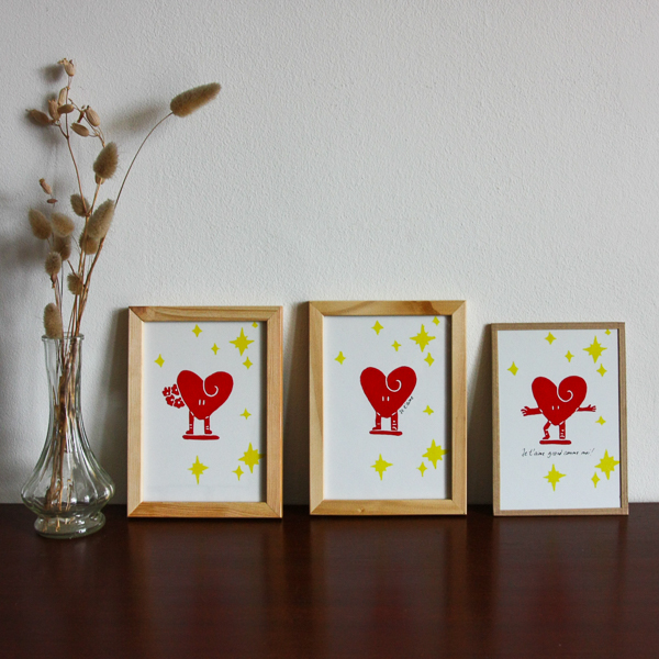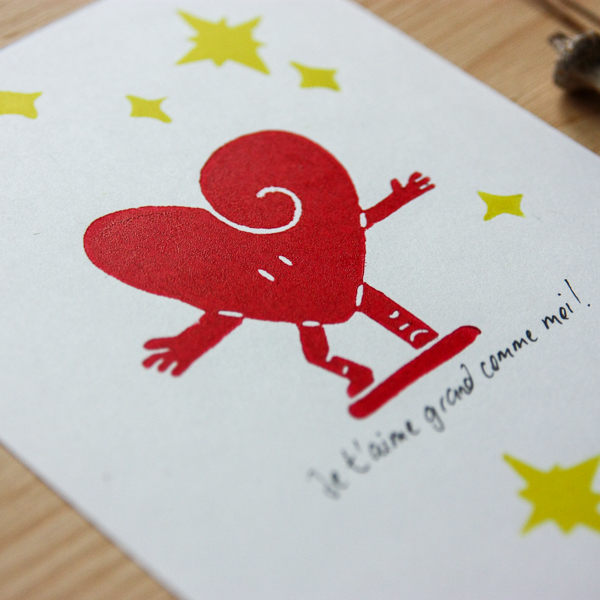 Linogravure - coeur - Je t'aime grand comme moi !