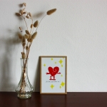 Linogravure originale, gravée et imprimée à la main sur du papier A6 180gr/m2. Elle sera envoyé encadrée.