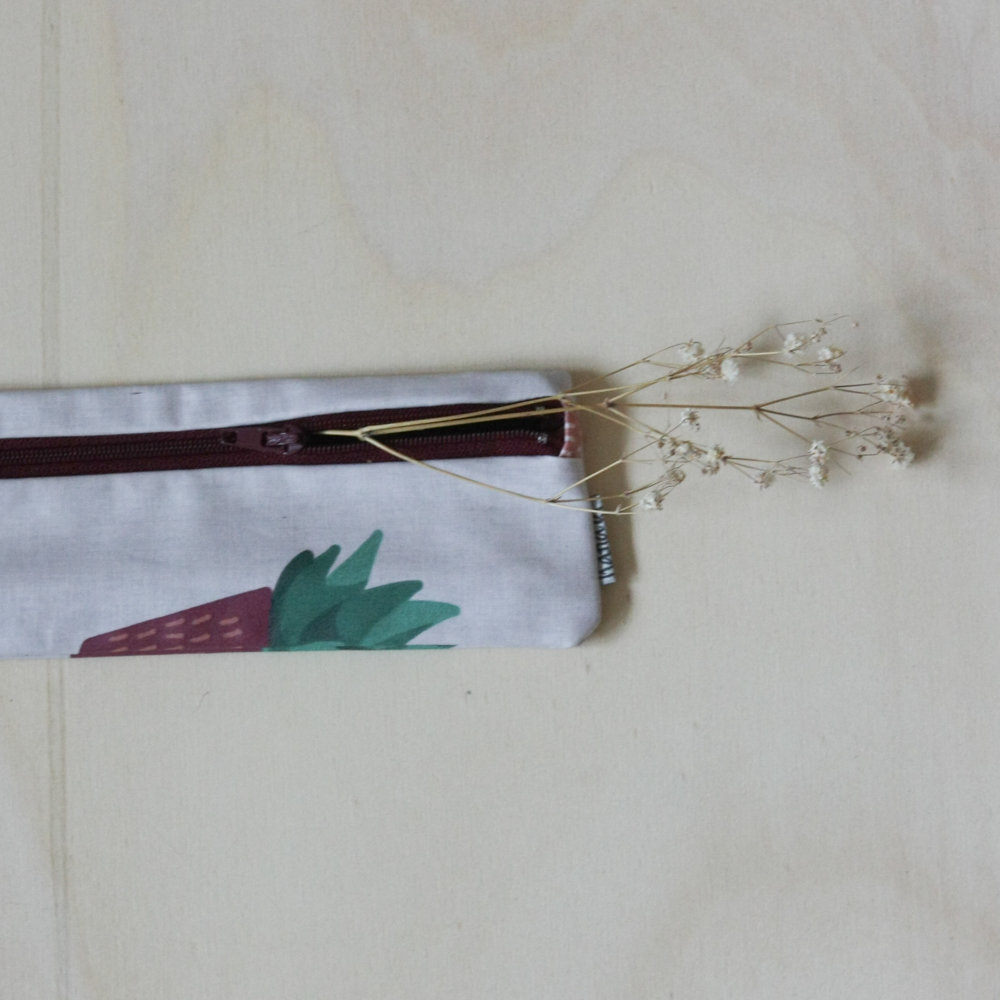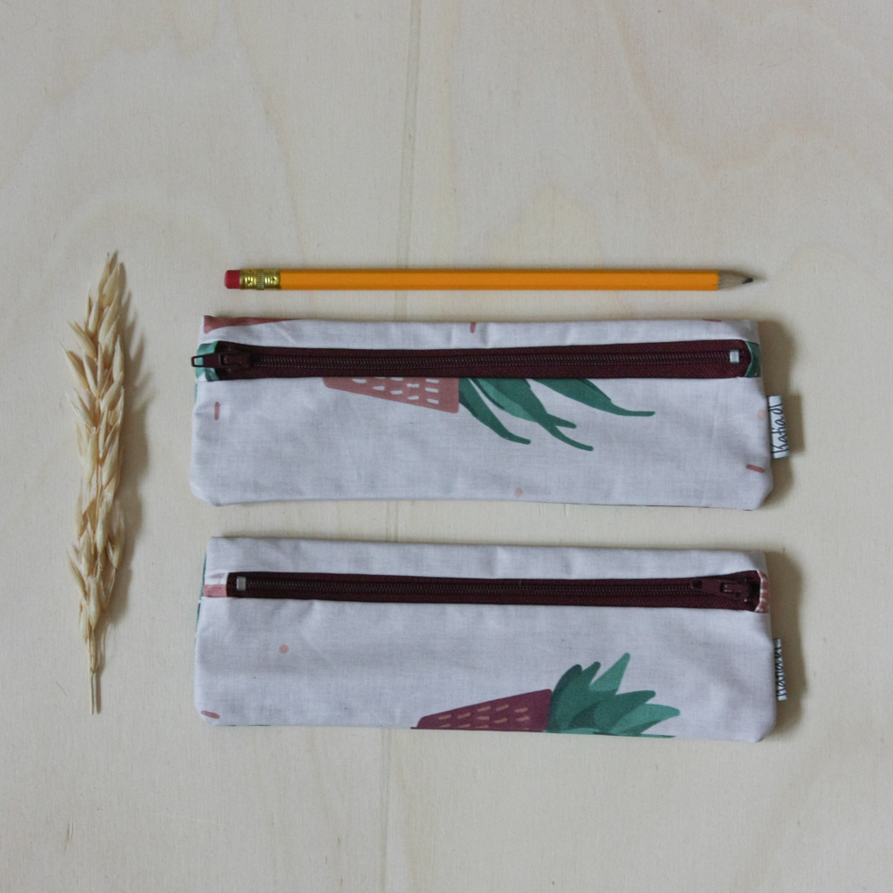Plumier pour crayons et stylos en coton enduit.