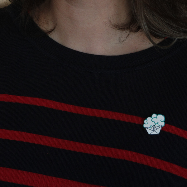 Elle peut être portée sur un haut mais aussi sur un sac.