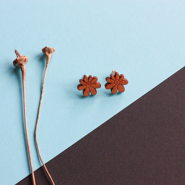 Le clou d'oreille est en argent, le bois en hêtre. Evitez de les mettre dans l'eau.
