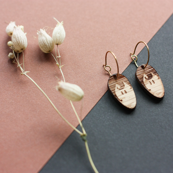 Les créoles sont en acier inoxydable plaqué or et sont légères car les personnages sont en bois de chêne. Evitez de les mettre dans l'eau.