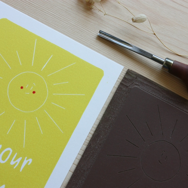 La linogravure est une technique d'impression en relief, semblable à la gravure sur bois, mais réalisée sur une plaque de linoléum. Ce procédé permet de reproduire plusieurs copies d’une image tout en conservant une qualité artisanale. Chaque tirage est unique et peut parfois avoir quelques petites taches ou irrégularités, c’est normal car cela fait partie du processus d’impression.