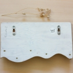 Ce patère réalisée à Prilly-Lausanne est une pièce unique fabriquée entièrement à la main à partir de planches de bois récupérées de la décoration d’un grand magasin lausannois.
